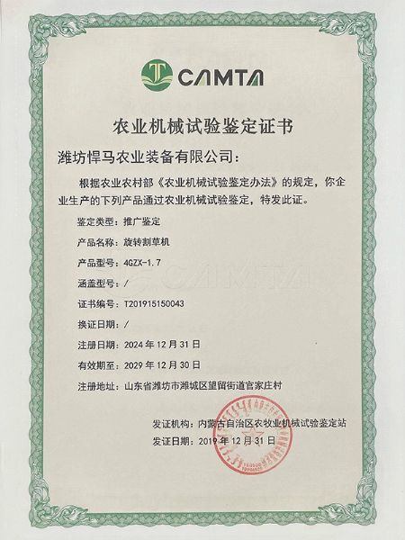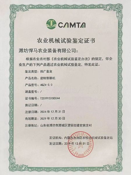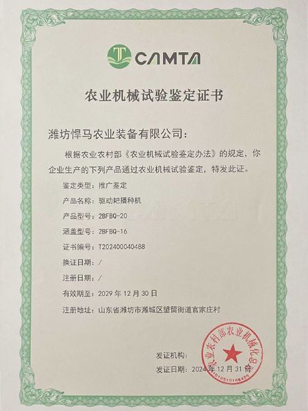 • 驅動耙播種機鑒定證書